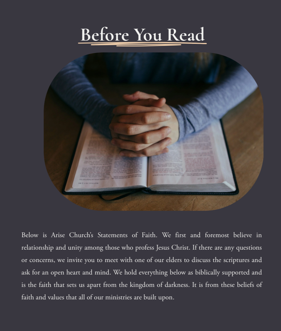 We firmly root ourselves in the truth and authority of the Bible as the living Word of God. We believe Scripture reveals the heart of God, forms the foundation for every area of life, and guides us in knowing Jesus, growing in faith, and living out our purpose with clarity and conviction.